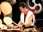 当今具有特色的艺术家表演世界著名的打击乐器,日式大鼓表现了现代社会。