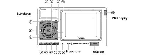 Pressing briefly: Switches the PND display between navigation functions and audio functions.
