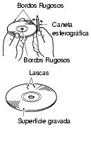 Quando manusear um disco evite tocar na superfície gravada; manuseie os discos pegando-os pelos bordos.