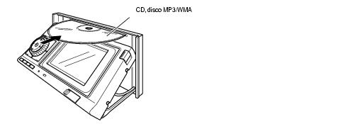 Introduza um CD na ranhura do disco, com e etiqueta virada para cima.